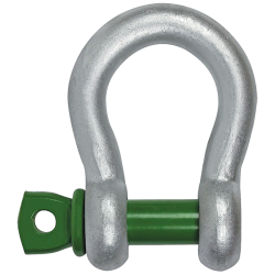The Green Pin® Bow Shackle SC is a bow shackle with a screw collar pin. The screw pin enables quick (dis)assembly which makes the shackle perfect for rigging activities in which assembly and disassembly occur relatively frequently. The Green Pin® Bow Shackle SC can be used for both one-leg and multi-leg systems. Due to the galvanization of the shackle its long-term durability is assured. The shackle's design reduces the wear of (wire) rope as the screw thread is hidden in a chamber. Particularly important for use offshore, the Green Pin® Bow Shackle SC conforms to a wide range of certifications from class societies such as DNV GL. The shackle is available in a range with a working load limit from 0.33 up to 55 ton.