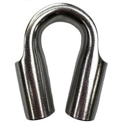 THIMBLES are designed and manufactured to protect wire rope from wear and damage, and preserve the shape of the eye when using shackles and hooks. Always ensure that you have the correct thimble for the size of rope being used, for any intermediate size the next size must be used. Thimbles are not load rated and only serve to protect the rope. Always inspect thimbles for abuse, damage, cracks and deformation (stretch) before use. Thimbles can be used for wire or synthetic rope.